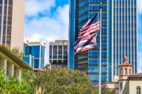 US Hawaiian Flags King David Kalakaua State Government Building Honolulu Oahu Hawaii Built 1922 and used as Federal Courthouse Sold to State Government 2002 Part Hawaii Capital Historic District