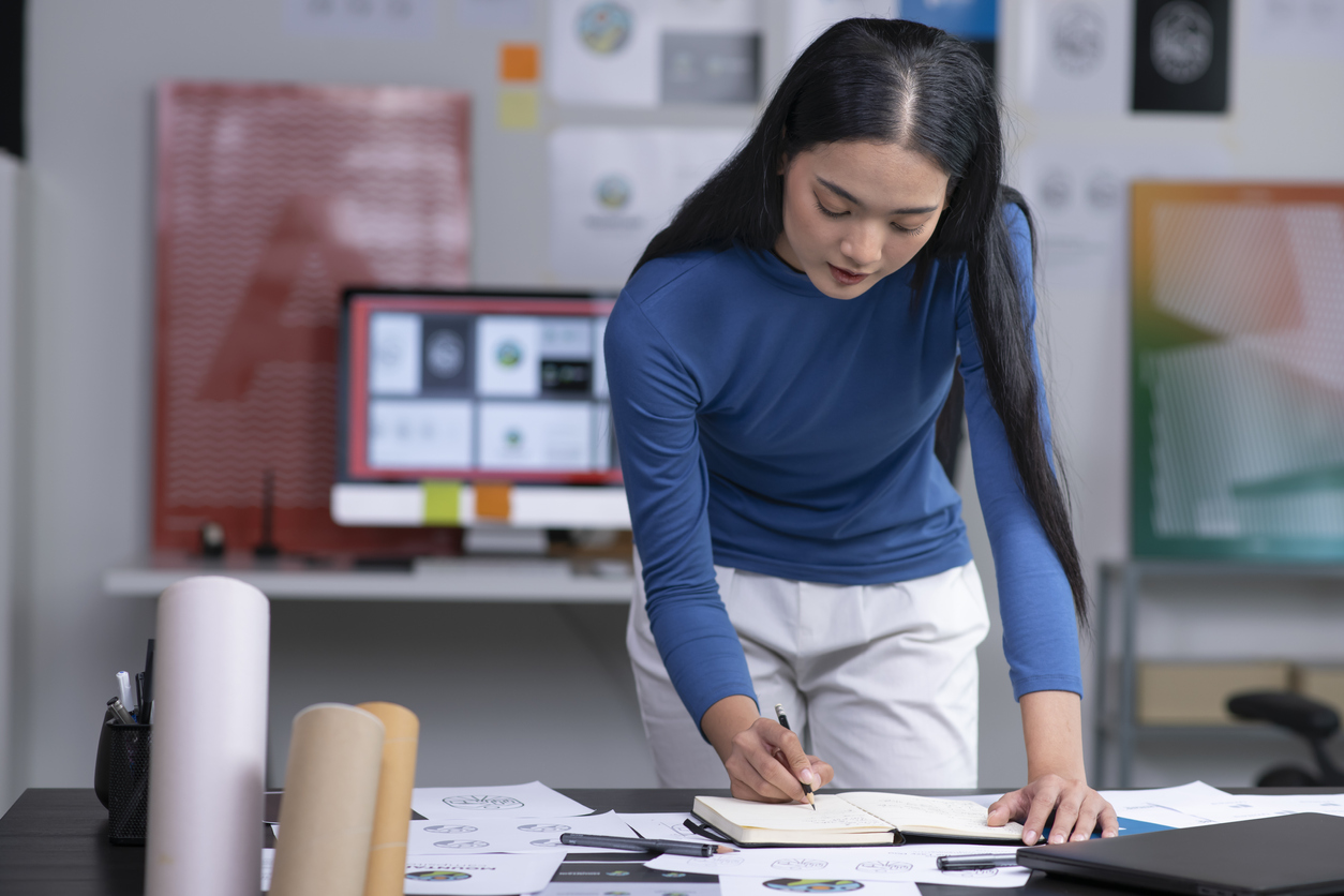 Asian woman Graphic designer working in office. Artist Creative Designer Illustrator Graphic Skill Concept.